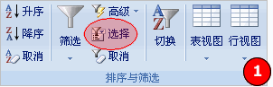 1、如果你希望筛选出某几个客户的订货记录,可先选择客户列,单击“日常工作”功能区“排序与筛选”功能组中的“选择”按钮:
