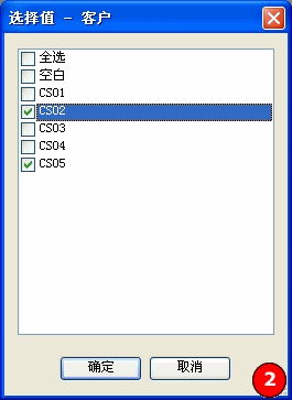 2、出现“选择值”窗口,选择你要筛选的客户,例如下图选择了两个客户,分别是“CS02”和“CS05”: