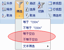 1、单击命令“等于空白”,将筛选出选定列内容为空的记录。2、单击命令“不等于空白”,将筛选出选定列内容不为空的记录。