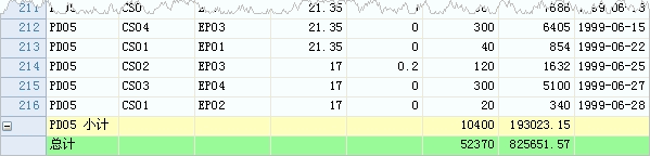 在生成汇总模式的过程中,会自动根据分组列进行排序,然后在每个分组之后插入一个分组行,用于显示分组统计结果。