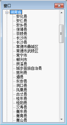 窗口有个目录树,根据此表生成,希望打开窗口的时候,能够自动展开并滚动“湖南省”这个节点至顶端,使得其子节点可见。