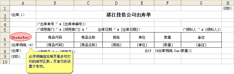 如果指定了每页最大可打印的细节区数,我们就可以将某一行或某几行设为页首行,这样每次换页的时候,将自动插入这几行作为页首使用。