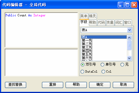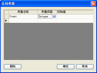 1、在全局变量管理窗口,加入一个名为Count的整数型Var变量,用于记录已经增加的行数: