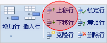 在“日常工作”功能区的“数据”功能组,有两个按钮用于调整行的位置: