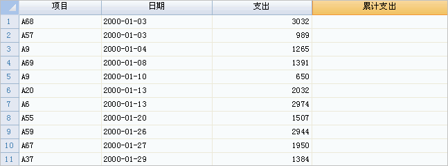 要求在累计支出列计算出每个项目截止到当日为止的累计支出,标准的代码是: