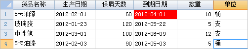 1、对于10天内即将到期的产品,用红低白字显示到期日期。