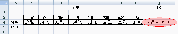 虽然可以设置一个条件表达式,例如只打印产品为PD01的行: