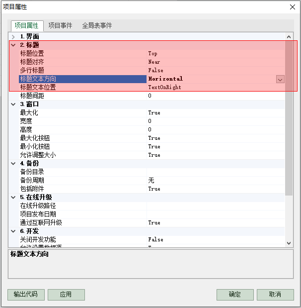 项目属性提供了一组属性,用于对表标题进行细节设置。