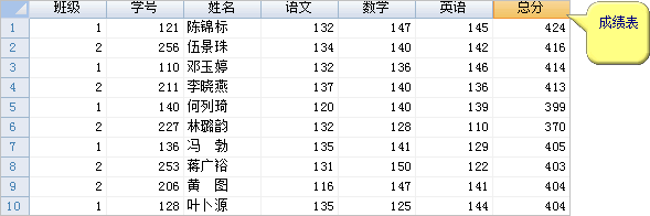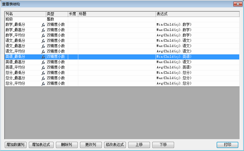 成绩表的总分列为表达式列,其表达式为:[语文] + [数学] + [英语]