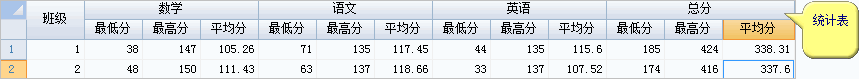首先两个表通过班级列建立关联,统计表为父表,成绩表为子表,假定关联的名称为"cj"。