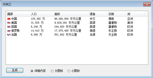 本节的任务是用ListView设计一个下图所示的窗口,显示各国更详细的信息: