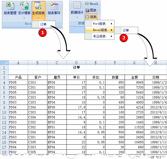 设计好Excel报表模版,并将模版添加到菜单后,就可以通过菜单来生成Excel报表了。