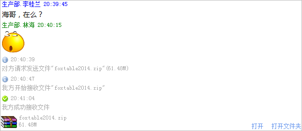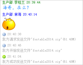 发送方的聊天记录有详细的文件发送记录,包括什么时候请求发送,什么时候开始发送,什么时候发送完成: