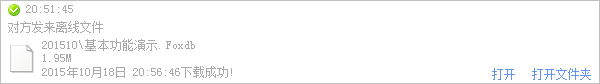 接收方可以单击下载命令,将文件下载到本地,接收方什么时候下载的,系统也会记录在聊天内容中:
