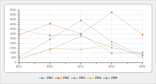 希望生成下面的图表,数据表中每行数据在图表中都对应一条线,也就是一行数据一个图系:
