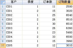 示例五,统计不同客户在1999年各季度下的订单数,以及总的订购数量