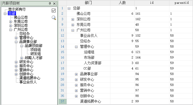 1、由于设置内联树的时候,单独指定了标题列,直接单击节点,修改的只是节点标题列(部门),不会对父列(parentid)和子列(id)有任何影响。