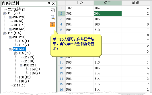 如果不想在目录树分开显示团队领导和下属员工的销量,而希望将二者相加,直接显示为团队总销量,单击下图所示的按钮即可: