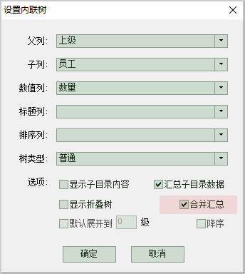 如果希望默认就将上下级的销量累加在一起显示,可以在设置筛选树的时候,勾选"合并汇总":