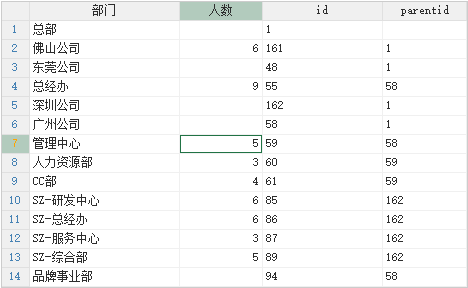 2、选择"部门表",在管理中心的人数列输入5,表示管理中心直属员工有5人: