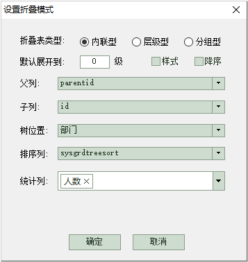 3、现在按下图所示设置折叠模式,统计列选择"人数"列: