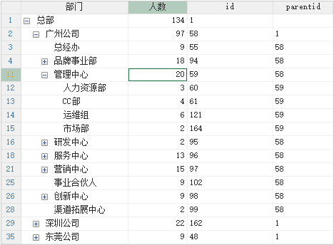 但一些用户会觉得这个结果是错误的,因为上表看不到管理中心直属员工人数5,所以他们会认为正确的结果应该是: 3 + 4 + 6 + 2 = 15