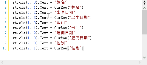 rt.cls(2, 1).Text = CurRow("性别")