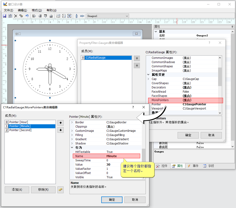 当然,MorePointers集合中的指针也是GaugePonter类型,例如: