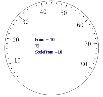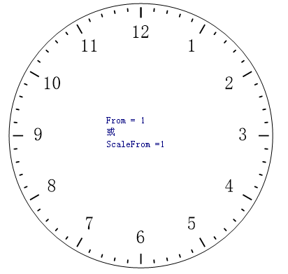 ScaleFrom和ScaleTo决定了Marks(或Labels)的起始值和终止值,也就是第一个刻度和最后一个刻度的值,如果没有设置,则分别等于From和To,如果From和To也没有设置,则分别等于Minimum和Maximum。