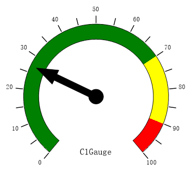下面的Gauge(仪表),用绿、黄和红标记了三个范围的值: