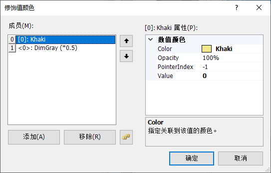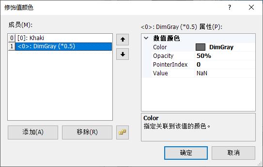 第二个项目没有设置Value,而是将其PointerIndex设置为0,意思是从第一个指针(编号为0)的值开始,这个Marks的颜色改为DimGray(50%的透明度)。