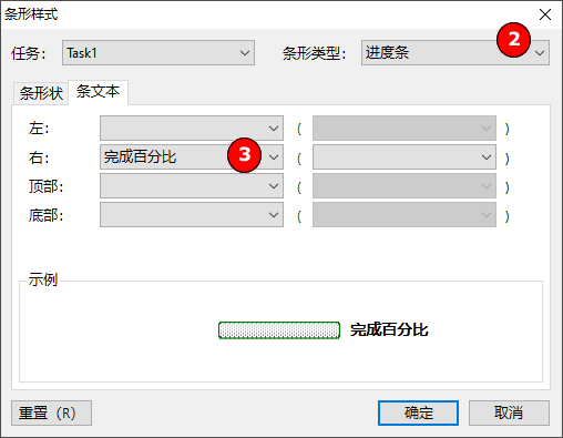 例如我们希望在任务条的右边显示任务名称,并在百分比进度条的右边显示完成百分比,如下图: