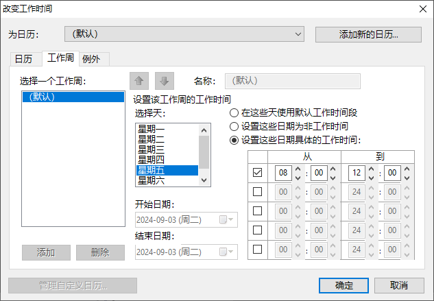 现在我们将周五的工作时间设置为上午8点到12点: