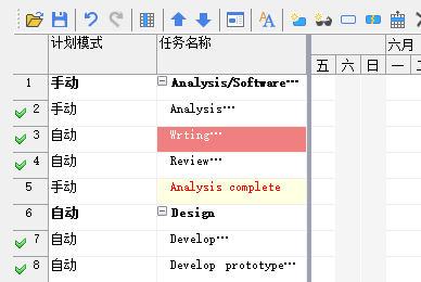 甘特图中左侧的数据表可以设置样式,样式包括背景颜色、字体颜色和字体: