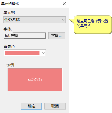 如果希望样式对这个任务的所有单元格有效,可以先选定整行再设置样式,或者在样式设置窗口中选择单元格的时候,从下拉列表中选择“全部”。