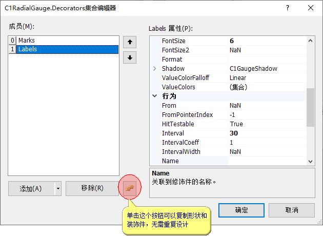 在设计仪表的过程中,通常会添加大量的仪表、形状和装饰件,其中相当部分的属性是相似的,为避免重复设计,可以在设计完一个仪表、形状或装饰件之后,单击设计窗口的复制按钮, 会生成一个完全一样的新组件,然后在这个基础上进行修改即可: