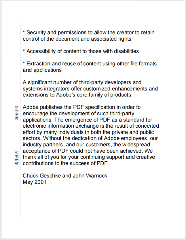 PDFCreater并没有直接设置页眉页脚的方法,而是和正文内容一样,通过绘制完成,要点为: