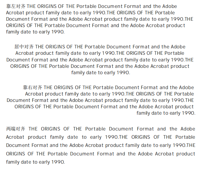 PDFCreator可以设置文本在水平方向靠左、居中、靠右对齐,但没有办法像Word或者HTML文件一样,让文本在水平方向实现两端对齐。