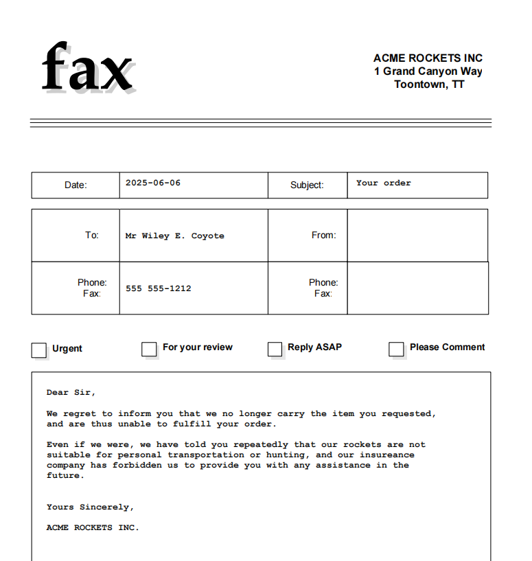 本实例任务是根据传真表的当前行生成一个传真,我已经实现设计好了这个传真的格式,保存在Images子目录中,文件名为"faxcover.emf"。